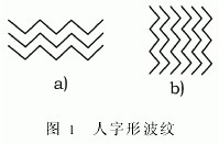 根据对板式换热器的市场调研,我国板式换热器生产厂家设计的板型主要以纵向人字形波纹为主。人字形波纹如图1所示,分为横向人字形波纹(见图1a)和纵向人字形波纹(见图1b)。